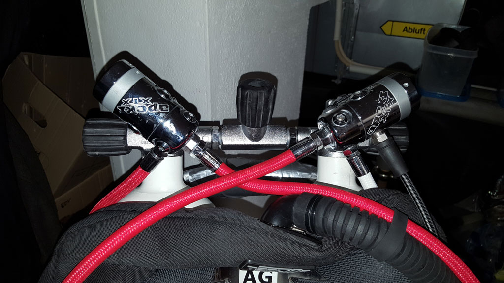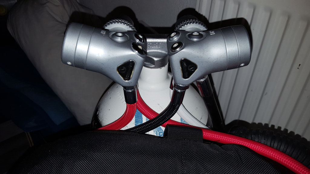 Aber auch z.B. ScubaPro und Atomics bieten die gleichen Möglichkeiten der Schlauchführung.